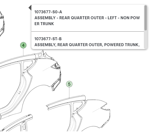 ASSEMBLY REAR QUARTER OUTER POWERED TRUNK LEFT 1073677-ST-B Metal 165*127*48 Images |